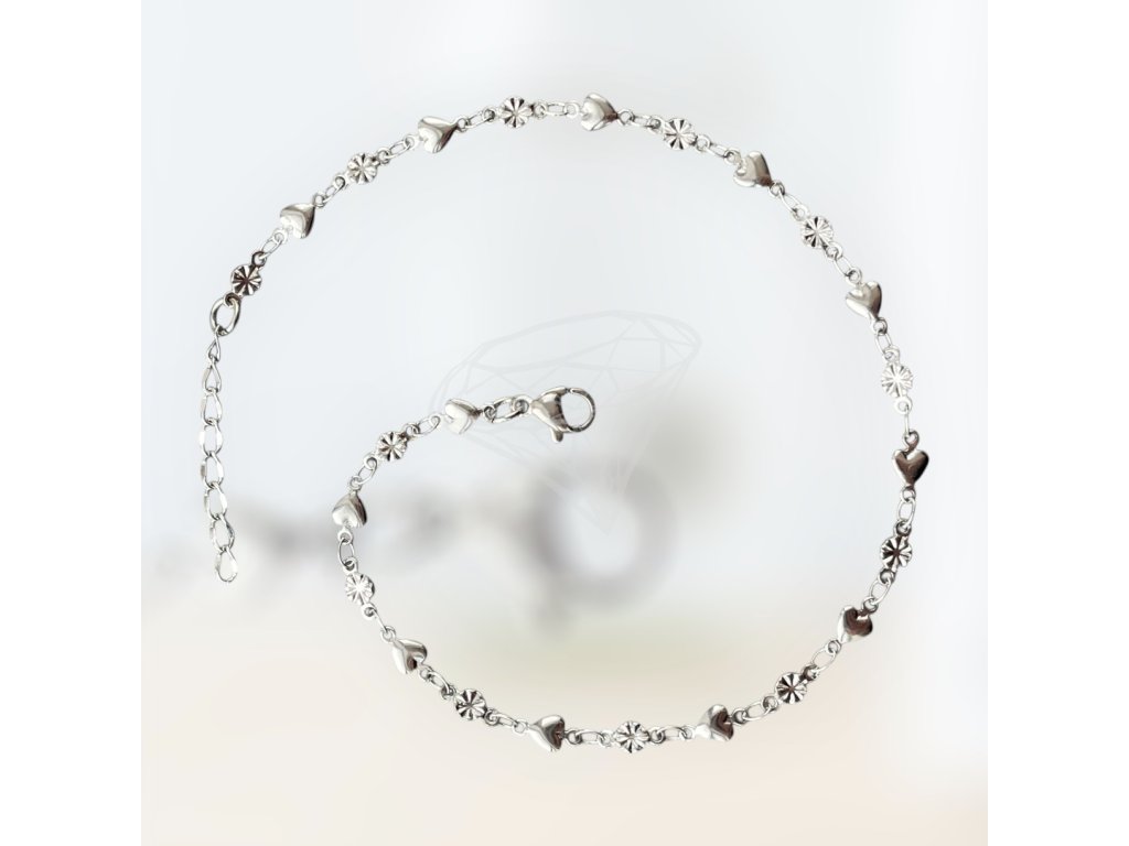 (O9034) Ocelový řetízek na nohu SRDCE