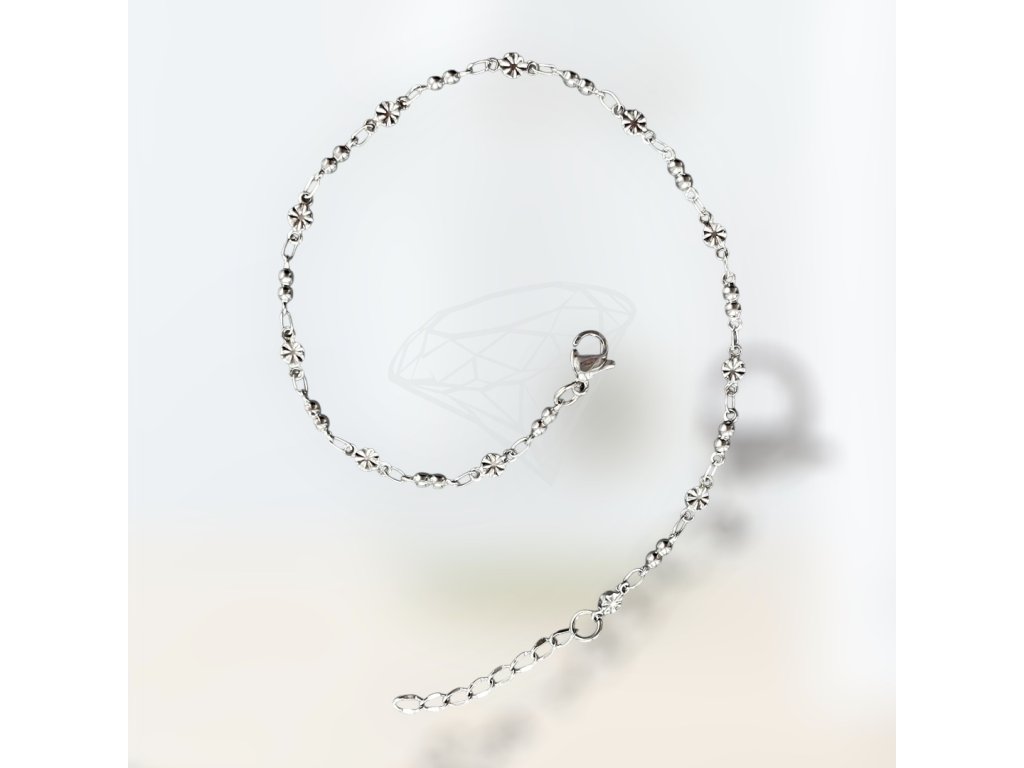 Šířka řetízku na nohu 0,3 cm. Délka řetízku 22 + 5 cm (prodlužovací řetízek). (Řetízek lze zkrátit či prodloužit po předchozí domluvě.) Obvod nohy měřte vždy nad kotníkem....