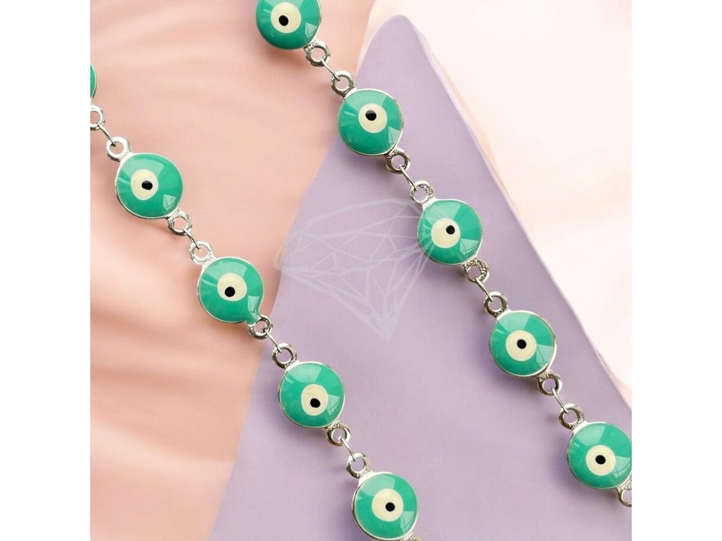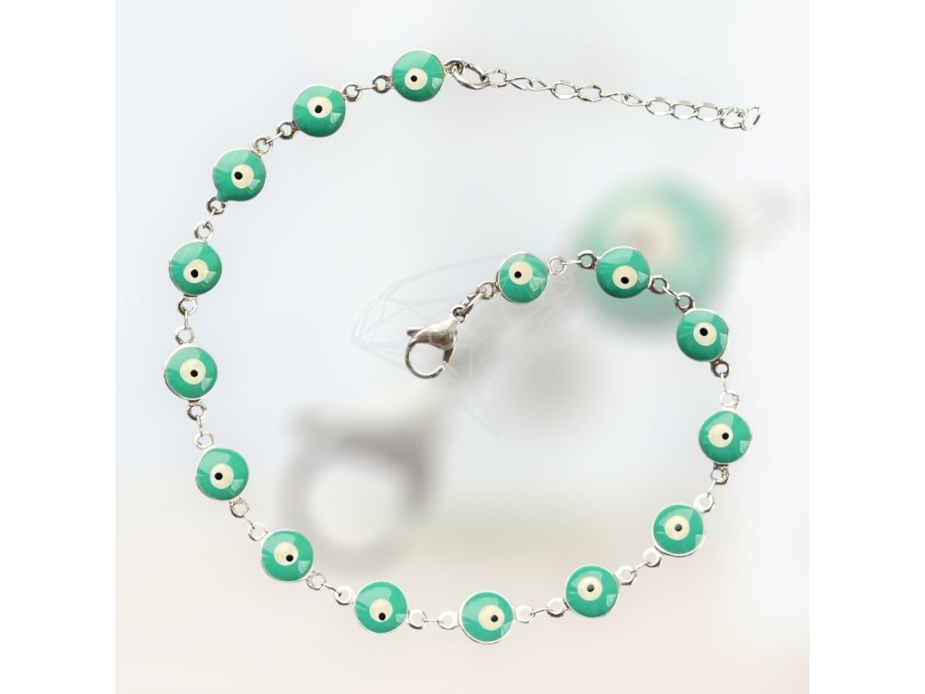 (O9068) Ocelový řetízek na nohu OKO zelené