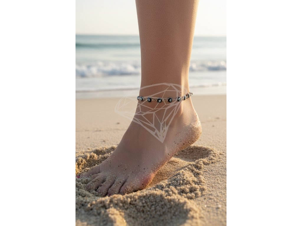 (O9069) Ocelový řetízek na nohu OKO černé