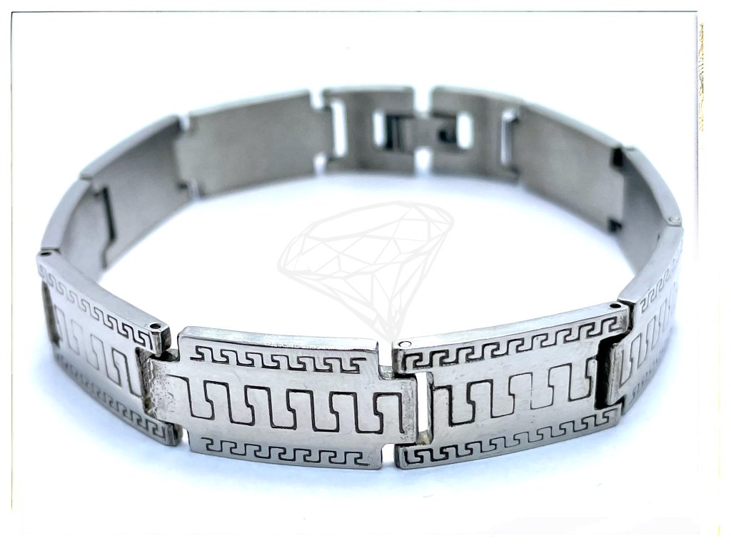 (O911) Ocelový pánský náramek PLOCHÝ s ŘECKÝM VZOREM